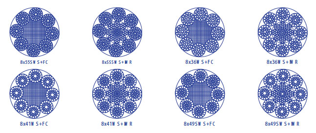 繩結(jié)構(gòu):8x55SWS+FC 8x55SWS+IWR 8×36WS+FC 8×36WS+IWR 8×41WS+FC 8×41WS+IWR 8×49SWS+FC 8×49SWS+IWR